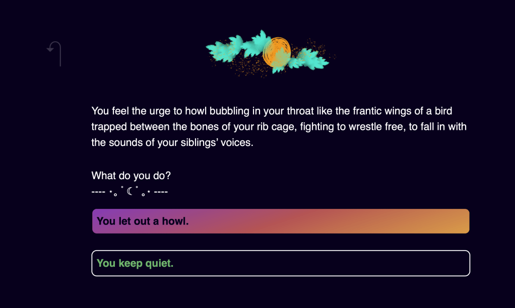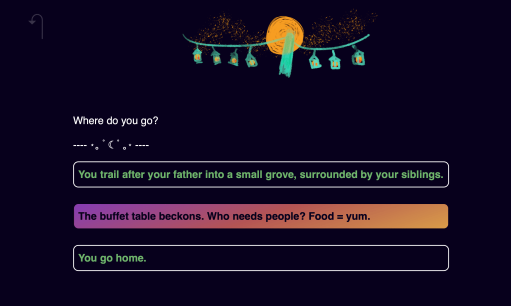 The final piece of this project was a Twine choose-your-own-story game, a text-based game where users can interact with the story in different ways.